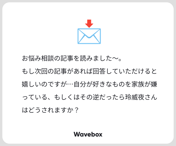 好きなものを家族が嫌っている、その逆だったら・・・・という内容ですね。